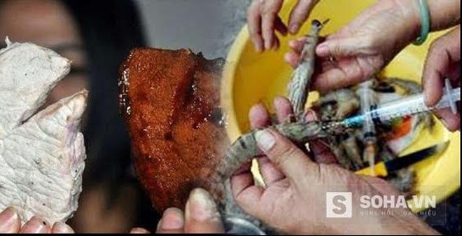Thịt lợn thiu thối được phù phép thành thịt bò, những con tôm cũng bị tiêm hoá chất trước khi đi bán.